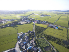 저멀리 논 한가운데 오늘의 목적지인 덕두마을이 보인다. 가지런히 정렬된 논들 위로 올라앉은 마을이 꼭 바다 위에 떠 있는 작은 섬처럼 보인다. 마을까지 곧게 뻗어 있는 길이 찾아오는 객들을 곱게 맞이한다. 마을 바깥 길을 따라 걸어도 20분이 걸리지 않는 아담한 마을이다.